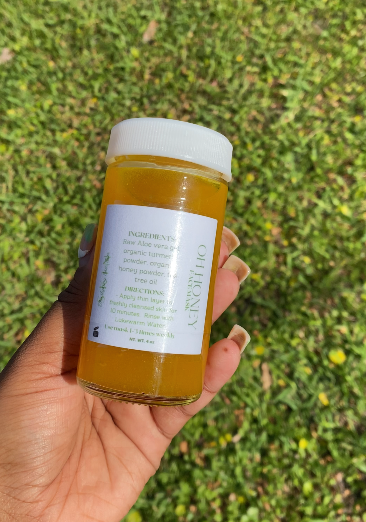 aloe vera gel, turmeric powder, honey powder, tea tree oil, essential oils